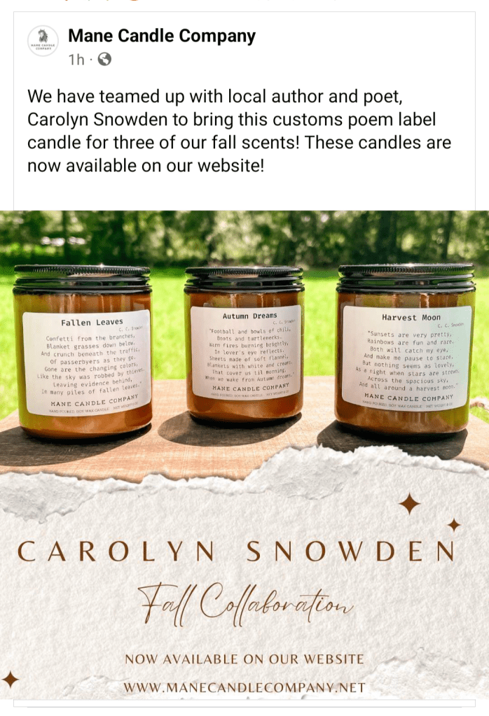 Welcome! Give the gift of poetry ! Children’s books or scented candles with poetry by c.c. Snowden. Share this: Click to share on X (Opens in new window) X Click to share on Facebook (Opens in new window) Facebook