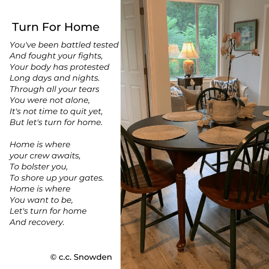 Turn for Home Posted byCarolyn SnowdenAugust 10, 2021August 25, 2021Posted inUncategorized Share this: Click to share on X (Opens in new window) X Click to share on Facebook (Opens in new window) Facebook Like Loading... Related